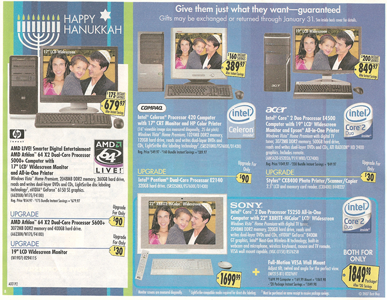 Minneapolis based Best Buy electronics retailer last year announced that in their advertising they were using "Happy Holidays" for the Christmas shopping season, and they were not using "Merry Christmas."This year they are using yarmulkas and menorahs in their ads! (Although the yarmulkas on the man and boy look like they were photoshopped in.)